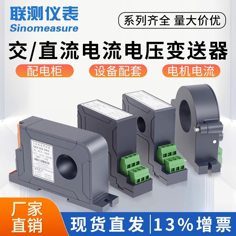 联测电流变送器交流霍尔直流电压电量传感器4-20mA/220V/0-5A穿孔