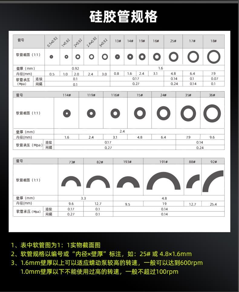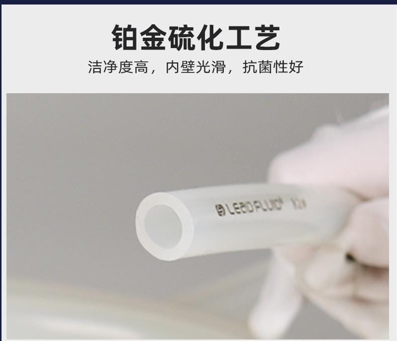 雷弗(LEADFLUID)蠕动泵专用硅胶管,采用铂金硫化工艺制造,达到医用级别标准,具有高洁净度、内壁光滑、抗菌性好等优点。管壁误差控制在2%以内,确保流量精准,适用于对流体传输要求严苛的场景。产品采用进口食品级硅胶材料,无味无毒,析出物少,弹性优异,耐臭氧、耐老化,可在-50°C至230°C温度范围内使用(工作状态-40°C至100°C)。每分钟600转、三滚轮条件下连续运行达75小时(测试液体为水),寿命可靠。支持多种灭菌方式,包括煮沸、高压蒸汽、环氧乙烷熏蒸及伽马射线灭菌。独立密封包装,双重防护,避免污染。广泛应用于制药、生物工程、精细化工、食品、医疗及实验室等领域,是高精度流体输送的理想选择。