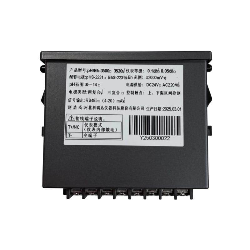 科瑞达pH/Eh-3520是一款专业级水质分析仪表,仪表等级为0.05级,具备高精度测量性能。该设备可配套pHS-2231 pH电极和EhS-2231氧化还原电位电极,测量范围广,pH范围为0~14,ORP可达±2000mV。支持两复合或三复合电极类型,配备DC24V或AC220V电源供电,输出信号包括RS485和4-20mA,具备上下限区间控制功能,适用于各类水处理自动化控制系统。产品由河北科瑞达仪器科技股份有限公司制造,品质可靠,广泛应用于环保、电力、化工等领域的在线水质监测系统。