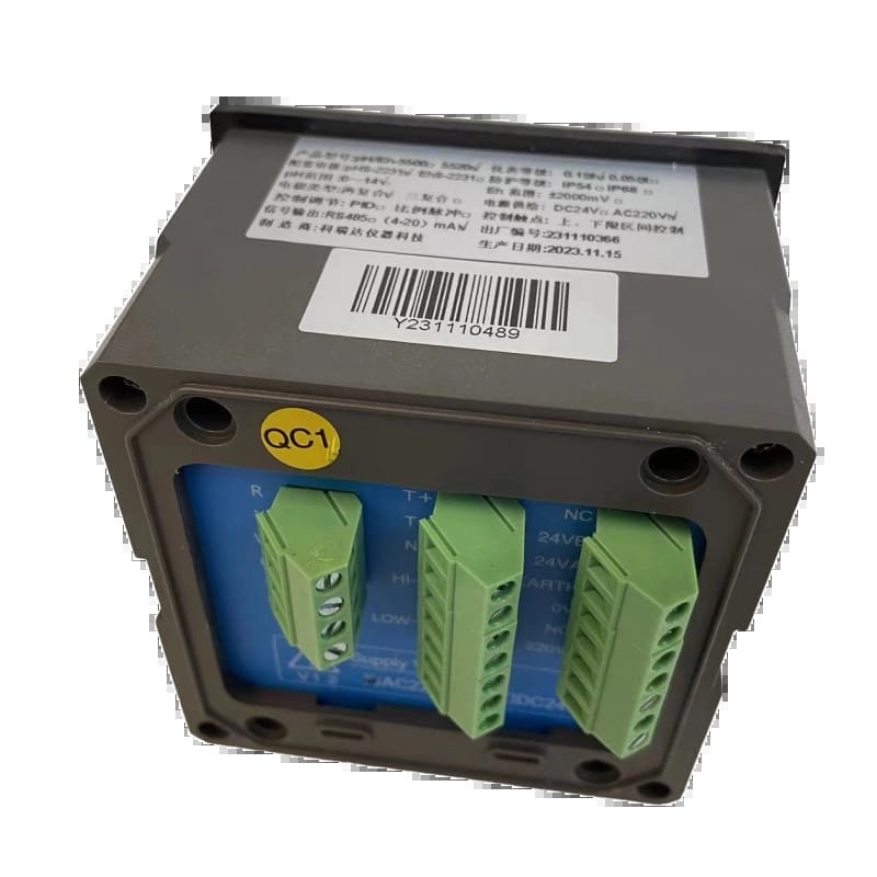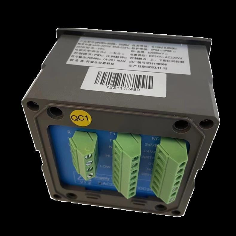 科瑞达ROC pH/Eh-5500系列pH/Eh控制器是一款专用于连续监测和控制液体pH值及氧化还原电位(Eh)的智能仪表。产品具备±2000mV宽量程Eh测量能力,支持上下限区间控制与脉冲输出,输出信号兼容RS485通讯及(4-20)mA模拟信号,便于集成至自动化系统。设备采用DC24V或AC220V供电,具备IP54防护等级,运行稳定可靠。出厂编号231110366,生产日期为2023年11月15日,适用于水处理、化工、环保等领域的精准水质控制。