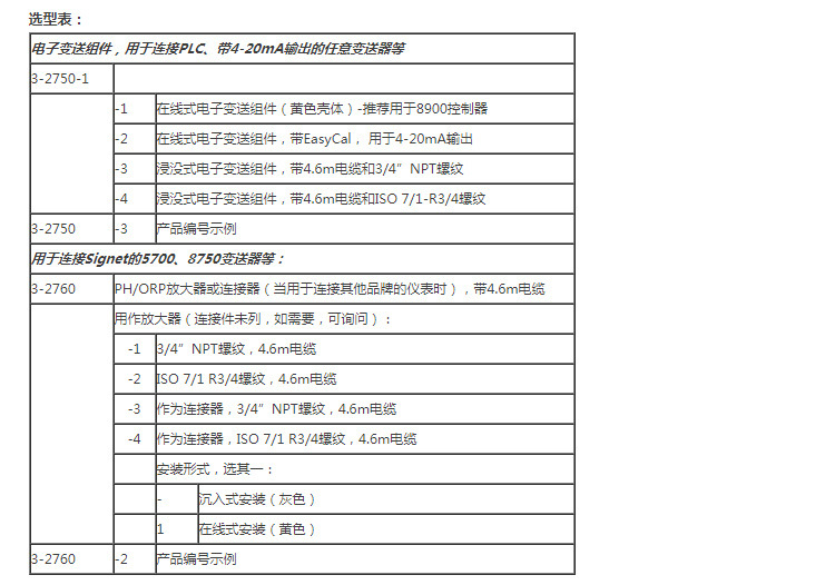 可在线或浸没安装,坚固双密封。采用Dryloc连接方式,可快速组成在线式或浸没式安装的测量系统。采用NEMA4X接线盒可延长电缆。有2750和2760两种型式。2750可以输出两种信号,4-20mA或S3L,能自动识别电极类型来配置测量。