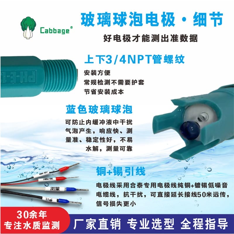 科贝环保(广东)股份有限公司专业生产制造水处理设备及水质在线检测仪,提供多种高性能pH电极产品。主打型号PH-E-1312与ORP-E-1313复合电极,具备0-14 pH测量范围,耐压0.4MPa,耐温0-60℃,适用于生活污水、工业废水、自来水等多种工况。配备专用同轴屏蔽线,五层包裹结构,强抗干扰,确保信号稳定传输。支持5米、10米、15米引线长度定制,安装方式为NPT3/4螺纹连接。 产品系列包括:复合塑料电极、进口玻璃电极、高温玻璃电极、脱硫电极、防腐四氟电极、温补塑料电极及常规ORP电极,满足不同应用场景需求。典型应用涵盖污水处理、电镀废水、造纸、制药、发酵罐、脱硫工艺等。 使用注意事项:电极引线为特殊屏蔽线,禁止私自剪接;避免长期浸泡于蒸馏水或蛋白质溶液;定期维护清洗以延长使用寿命。电极保质期一年,建议尽快使用。如需定制长度或技术咨询,请联系科贝环保官方客服。