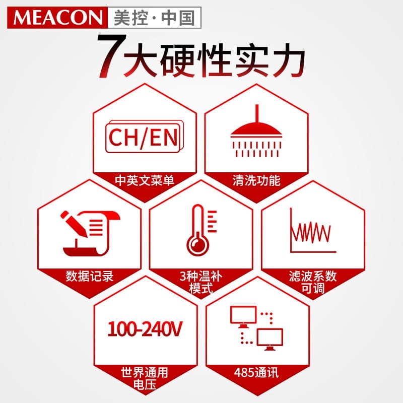 美控(MEACON)MIK-pH系列pH/ORP检测仪是一款智能工业控制器,采用4.3英寸真彩色液晶显示屏,分辨率高达480*272,内容展示清晰丰富。支持中英文菜单切换,操作更便捷。具备100组数据记录功能、可调滤波系数和清洗输出触点,支持Modbus-RTU协议的RS485通讯,适配多种工业环境。 产品测量范围广:pH-2.00~16.00,ORP-1999~1999mV,温度-10.0~130.0℃,输入阻抗≥10^12Ω,确保高精度测量。支持NTC10K、PT1000/PT100等多种温补模式,提升稳定性。配备两路隔离式0/4-20mA电流输出(最大负载750Ω),精度达±0.2%FS,并提供两路报警输出与可编程清洗控制。 整机符合IP65防水防尘标准,电源支持100~240VAC宽电压输入,适用于污水处理、脱硫脱硝、酸碱加药、水产养殖、电镀废液处理及化学实验等多个行业。配套5米复合电极,第三代MIK-pH8.0性能卓越,广泛应用于对测量精度与系统稳定性要求高的场合。 拥有国家发明专利(专利号:ZL201610534500.7)及实用新型专利,通过ISO9001、CE认证和高新技术企业认定,品质可靠,技术领先。