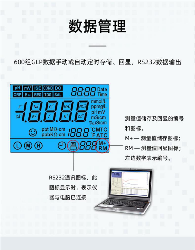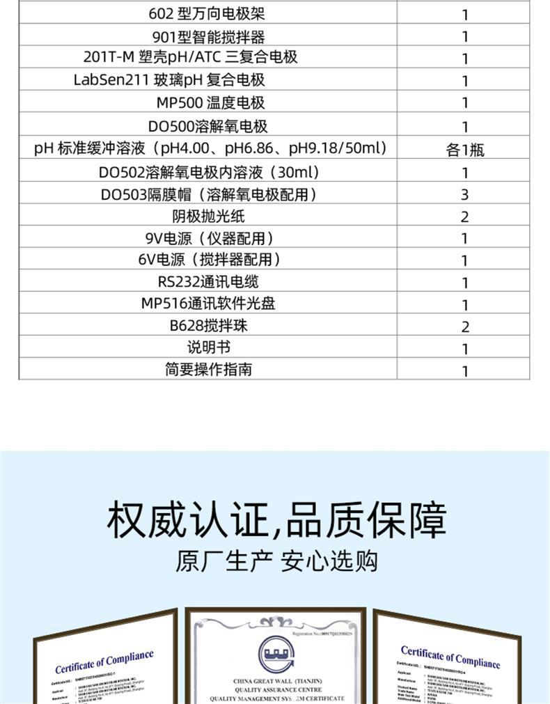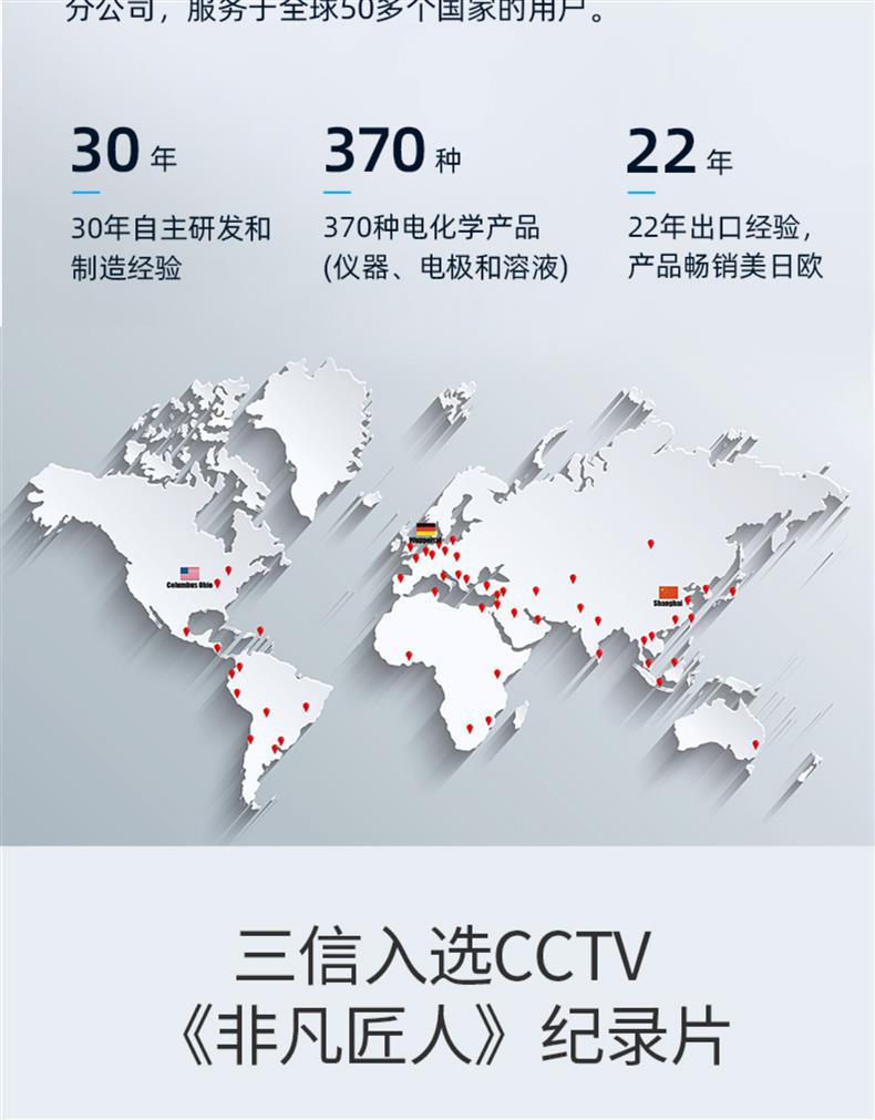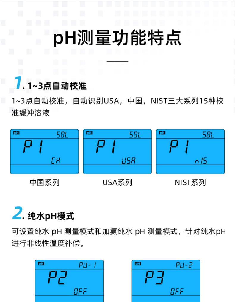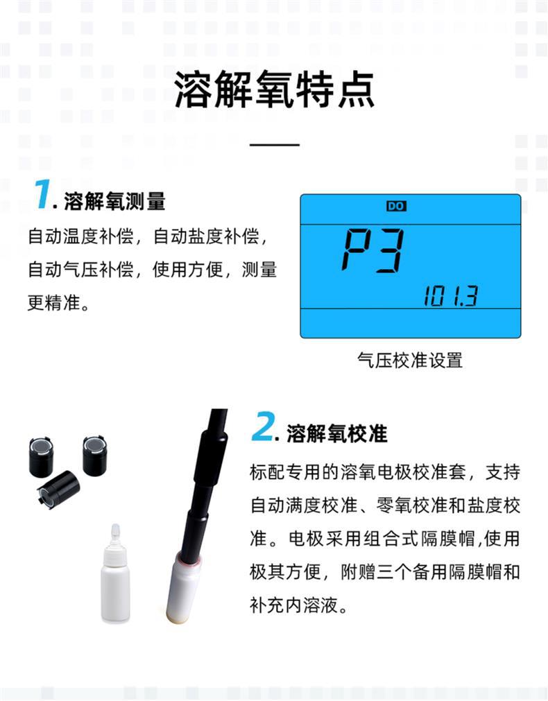 SANXIN(上海三信)MP525 pH/溶解氧测量仪是一款专业级电化学分析仪器,适用于常规水溶液的快速精确测量。该仪器具备pH、mV、溶解氧(DO)、温度等多参数测量功能,测量范围广,精度高:pH电计精度±0.002pH,溶解氧配套精度±0.40mg/L。支持自动温度、盐度和气压补偿,确保溶解氧测量更准确。 仪器配备瑞士LabSen Q211高端可充式玻璃pH电极,采用锂玻璃配方敏感膜,阻抗低、电位稳定,延长使用寿命。独特的三复合电极设计集成pH、参比与温度电极,实现自动温度补偿。溶解氧电极为专利三合一极谱型(专利号:ZL201320624287.6),内置温度与盐度传感器,极化时间仅需5分钟,大幅提升效率。 MP525支持1~3点自动校准,可识别中国、USA、NIST三大缓冲液系列,并提供纯水及加氨纯水pH测量模式,进行非线性温度补偿。具备600组GLP数据存储功能,支持手动或定时储存,并可通过RS232接口连接电脑传输数据。仪器符合IP54防尘防溅等级,配备硅胶保护帽,耐用性强。 标准配置包含智能搅拌器、多种电极、校准缓冲液及配件,满足实验室全面需求。整机享受2年保修,电极6个月保修。支持开具13%增值税专用发票,满2000元赠定制皮革笔记本+水性笔。三信专注电化学分析30年,产品出口美日欧,品质可靠,广泛应用于科研、环保、水务等领域。