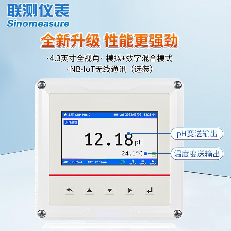 联测仪表大屏款pH/ORP控制器专为环保污水及检测领域研发制造,配备4.3英寸全视角彩色显示屏,测量精度达0.1级,通过中国环境保护产品(CCEP)认证。支持pH、ORP和锑电极测量,内置双路隔离4-20mA变送输出,RS485 Modbus通讯及可选NB-IoT无线传输,实现数据上云与远程监控。设备具备IP66防护等级,适应户外恶劣工况,支持手动/自动温度补偿(线性、纯水、酸、碱四种模式),最多可存储50万条数据。兼容多种pH电极,广泛应用于生活污水、工业废水、烟气脱硫、生物制药、环境检测及实验室等场景。联测仪表拥有17年行业经验,ISO9001与SGS认证企业,产品远销130+国家和地区,提供24小时技术支持、免费开票与全国包邮服务,确保用户无忧使用。