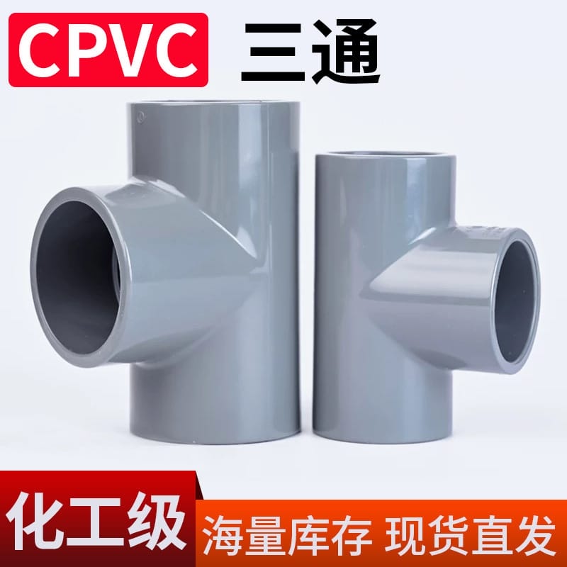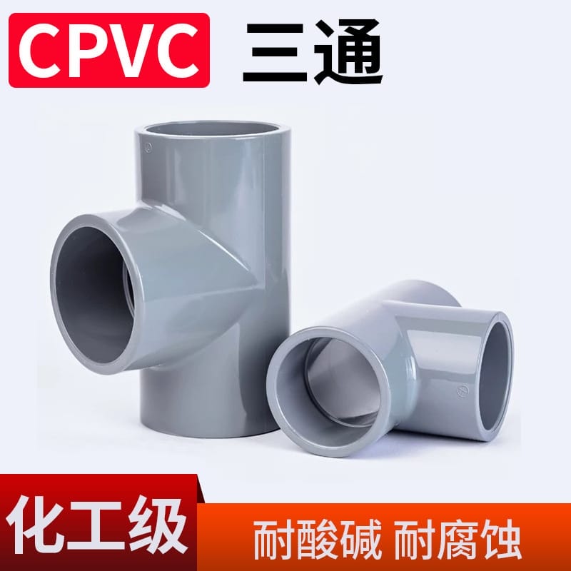 〉 PVC-C耐腐蚀耐高温塑胶工业三通管浅灰色塑胶工业配件环琪工业管