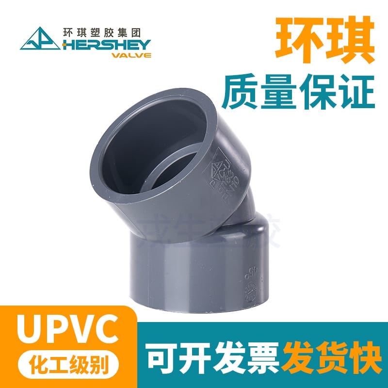 〉 环琪45度弯头国标直弯UPVC塑料胶粘加厚给水PVC化工级耐酸碱腐蚀