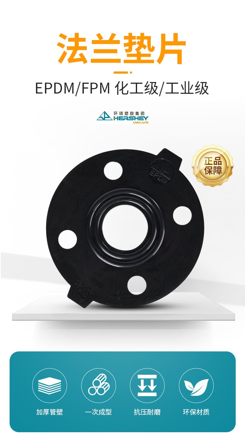 阔思(KUOSI)EPDM/FPM法兰垫片,由环琪塑胶集团出品,采用优质EPDM或FPM材料一次成型,管壁加厚设计,具有出色的抗压、抗弯、耐磨和环保特性。产品孔位精准,密封性能优异,耐酸碱、耐腐蚀,广泛应用于电子制造(如半导体、液晶显示器)、药品生产(医用无菌水、人工肾析水)、化工合成(化肥、精细化工)以及高端制造(电镀、镀膜玻璃)等行业。提供DN15至DN300全系列规格,确保各种工业管道系统的安全可靠连接。