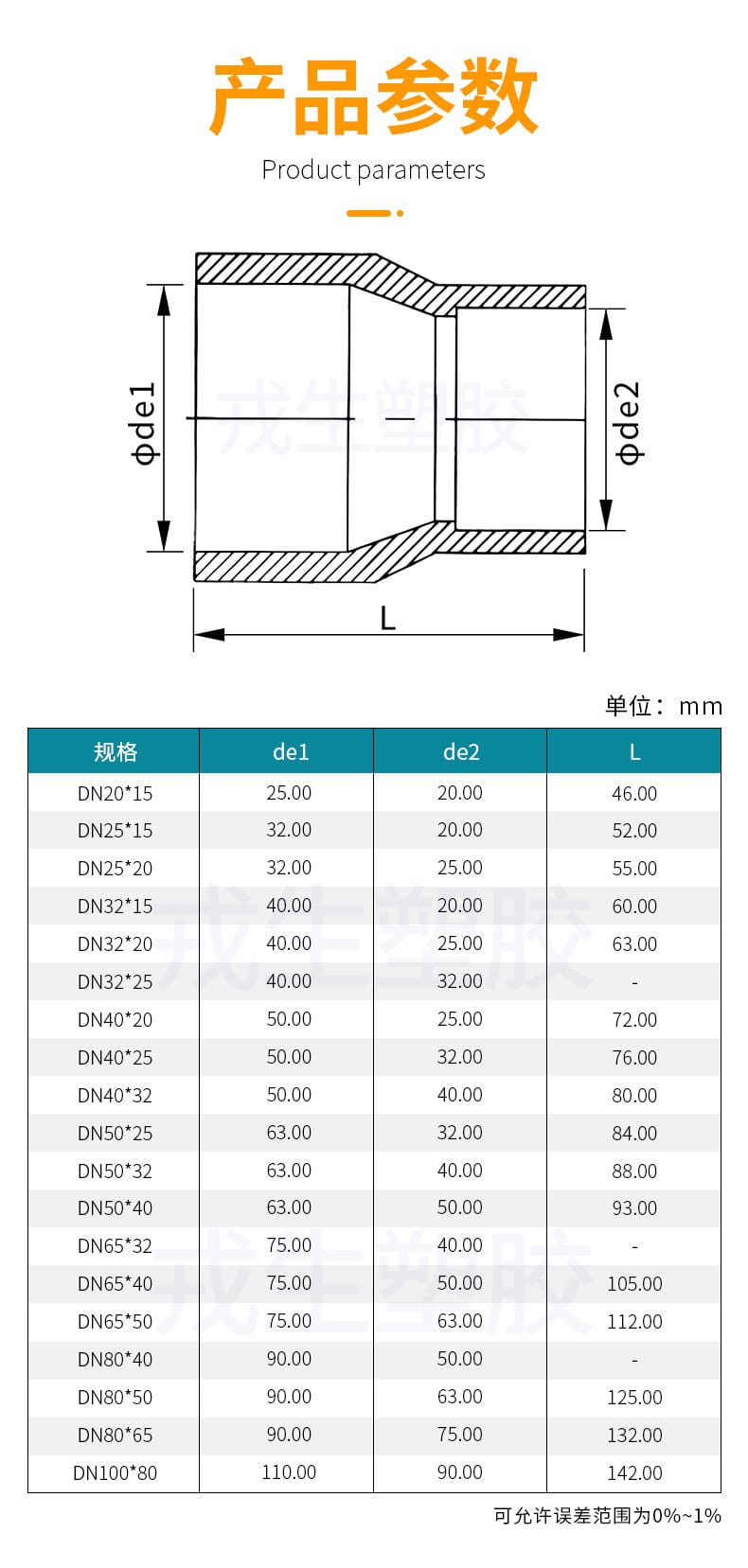 〉 环琪UPVC大小头变径直接化工PVC管件给水管异径直通接头配件大全