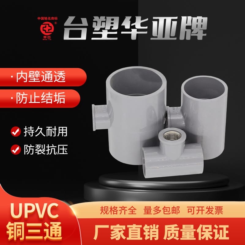 本店专业供应各类UPVC管件,产品包括:UPVC管帽、UPVC 90度弯头、UPVC直接头、UPVC大小头、UPVC 45度弯头、UPVC等径三通、UPVC异径三通、UPVC内丝接头、UPVC外丝接头、UPVC活接、UPVC一体法兰及UPVC管卡等,规格齐全,尺寸覆盖DE20至DE400。 【产品信息】 - 名称:铜三通(示例) - 颜色:浅灰色(可能存在轻微色差) - 材质:聚氯乙烯(UPVC) - 公称压力:10公斤(国标加厚型) - 特性:内外壁光滑、不结水垢、耐酸耐碱、适用于给水系统 【DN/DE尺寸对照表】 | DN15=DE20=20mm=4分(1/2) | DN100=DE110=110mm=4寸 | | DN20=DE25=25mm=6分(3/4) | DN125=DE140=140mm=5寸 | | DN25=DE32=32mm=1寸 | DN150=DE160=160mm=6寸 | | DN32=DE40=40mm=1.2寸(1-1/4) | DN200=DE225=225mm=8寸 | | DN40=DE50=50mm=1.5寸(1-1/2) | DN250=DE280=280mm=10寸 | | DN50=DE63=63mm=2寸 | DN300=DE315=315mm=12寸 | | DN65=DE75=75mm=2.5寸(2-1/2) | DN350=DE355=355mm=14寸 | | DN80=DE90=90mm=3寸 | DN400=DE400=400mm=16寸 | 【安装说明】 管材与管件涂胶后需在1分钟内插接,15分钟定型,2小时初步固化,建议24小时后再通水使用。 【运输与售后】 - 快递最长发1米,4米可整根发物流(部分区域需自提) - 运费需根据数量、型号和地址另行核算,请下单前联系客服确认 - 因运输易产生划痕,非质量问题或发错货不支持退换 【应用案例】 已成功应用于宁波污水处理、安污水处理、杭州乐水游乐场、四川夹江高架项目、连云港农场灌溉、滁州水质处理厂等工程项目。 厂家直销,支持定制与裁管加工(特殊尺寸及批量订单需咨询客服),国家标准生产,品质可靠,值得信赖。