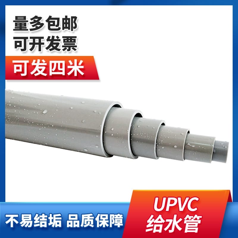 本产品为浅灰色UPVC(PVC-U)给水管及配件系列,材质为聚氯乙烯,具有耐腐蚀、耐酸碱、卫生无毒、流体阻力小、机械强度高等优点,广泛应用于民用与工业建筑供水、埋地给水系统、水处理厂、园林灌溉等工程。产品规格齐全,涵盖20mm至400mm外径,包含UPVC 45度弯头、等径三通、异径三通、直接头、大小头、活接头、外丝内丝接头、管帽、一体法兰、铜三通等多种管件。提供详细的DN/DE尺寸对照表,便于选型安装。管件连接采用专用胶水粘接,15分钟定型,24小时后通水效果最佳。注意:不同批次可能存在轻微色差,运输过程中可能有划痕,非质量问题不支持退换。大件建议发物流,具体运费需联系客服核算。
