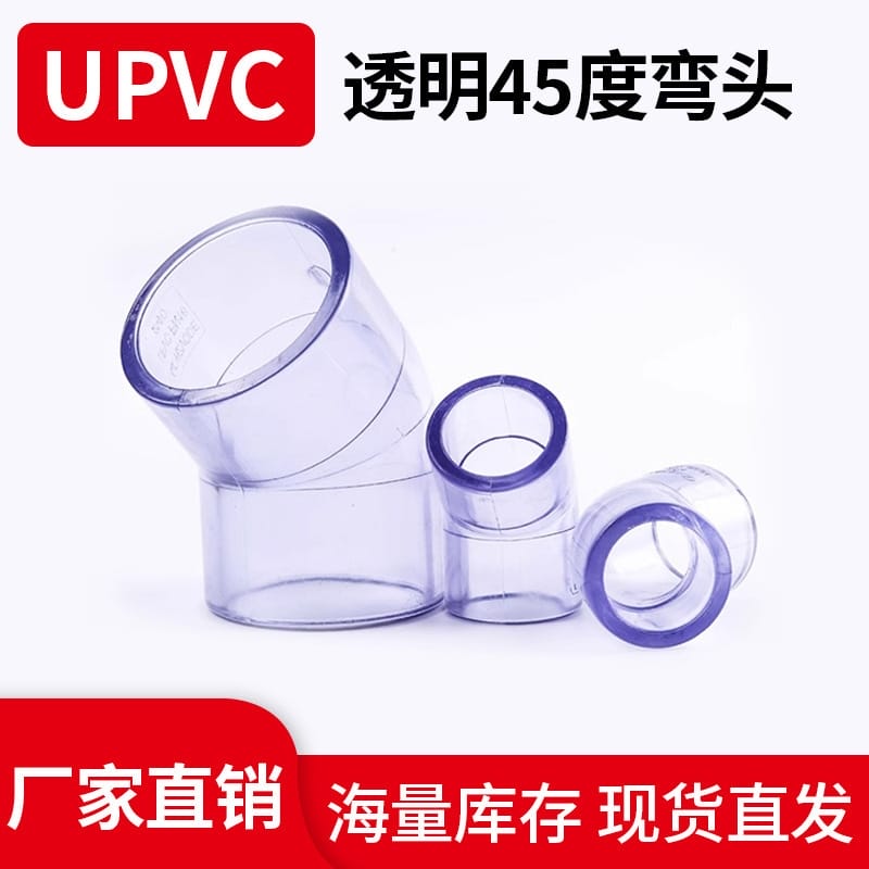 〉 国标新料UPVC透明45度弯头水族鱼缸透明PVC化工管道配件小弯