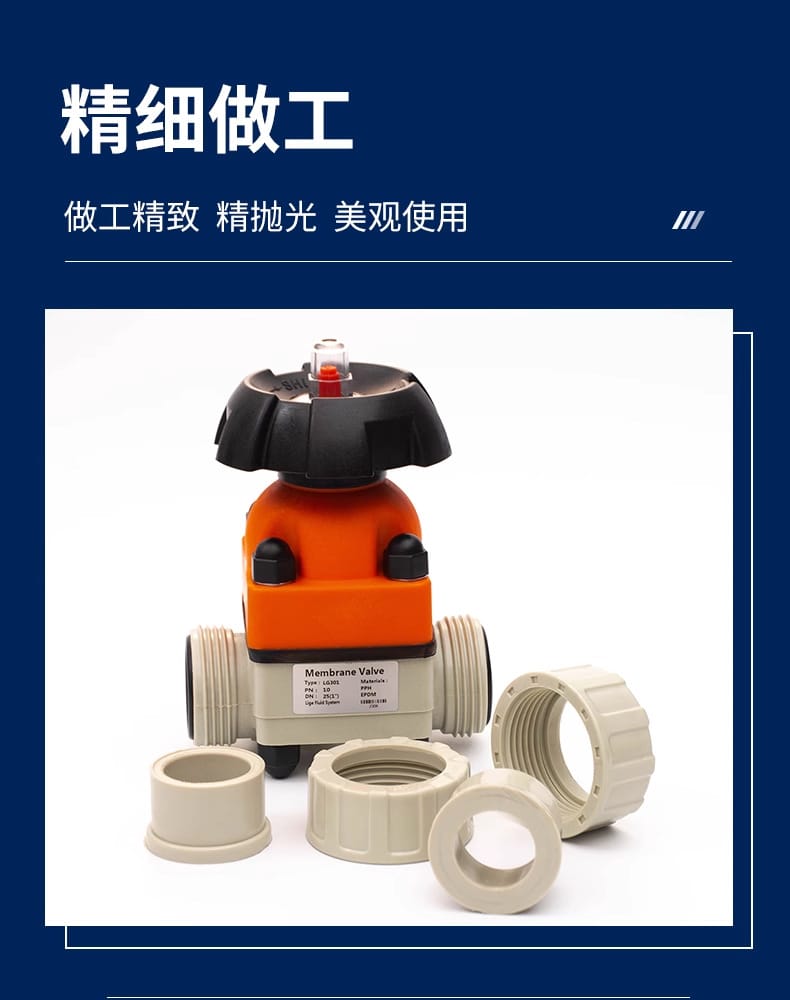 本产品为高品质法兰隔膜阀,公称通径DN15-DN100,符合国标尺寸标准,广泛应用于石油化工、冶金、制药、食品生产及水处理等行业。采用化工级耐酸碱、耐腐蚀材料制造,具备优异的绝缘性、强度和耐用性,确保长期稳定运行。 阀门类型包括承插式隔膜阀,支持UPVC胶黏、CPVC胶黏及PPH热熔连接(DN100以下推荐承插热熔,耐压性能更优)。表面精抛光处理,外观美观,流体阻力小,密封性好。 产品严格执行精细生产工艺,安全环保,品质可靠,支持7天无理由退换(阀门类不影响二次销售),管材类非质量问题不退换。默认发圆通、韵达快递或中通快运,大件可发物流。支持定制开模,先进自动化生产线保障供货效率与产品质量。