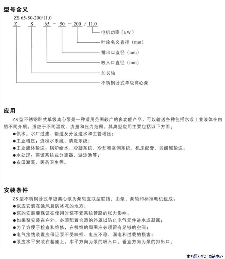 〉 南泵流体卧式不锈钢单级泵管道泵热水循环泵ZS100-80-65-50-40-32