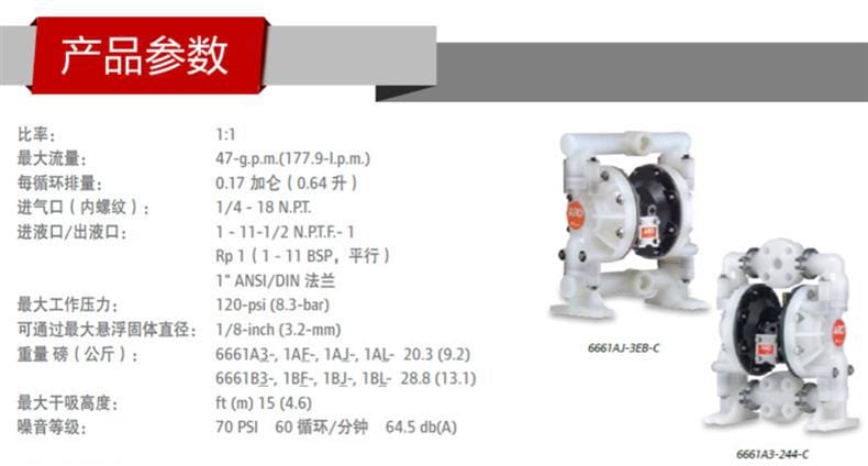 ARO英格索兰气动隔膜泵6661A3-344-C隔膜泵1寸塑料气动隔膜泵