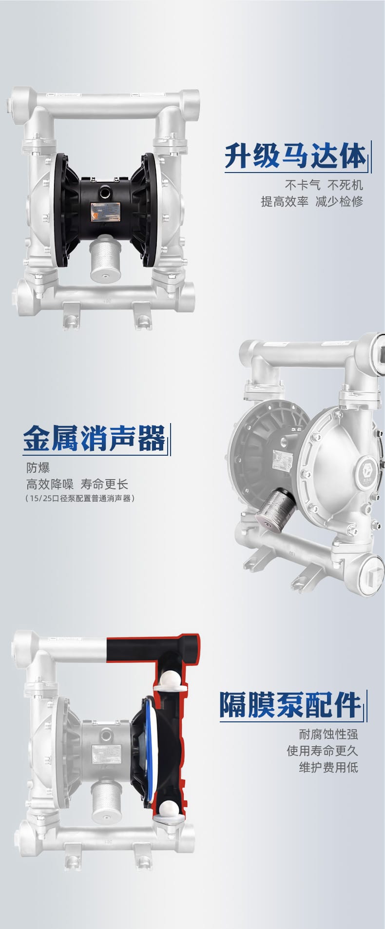 威尔顿(WILDEN)QBY3系列气动隔膜泵,专为高腐蚀性、易燃易爆等复杂工况设计,是工业流体输送的理想选择。产品通过ISO9001质量管理体系、CE认证及浙江制造认证,品质可靠。采用升级马达体结构,运行平稳,不卡气、不死机,搭配金属消声器,有效降噪,提升使用寿命。泵体提供不锈钢、工程塑料、氟塑料、铝合金、球铁五大材质选择,满足不同介质输送需求。具备安全防爆、可空打、不损坏等四大防护功能,维护成本低,适用性强。最大流量可达2000L/min,支持大流量、大压力、耐酸碱工况,广泛应用于化工、环保、石油、食品、制药等领域。边锋机械集团出品,世界500强企业长期合作伙伴,全国设有32个服务网点,支持现货供应与快速发货,提供五年质保与专业技术支持。