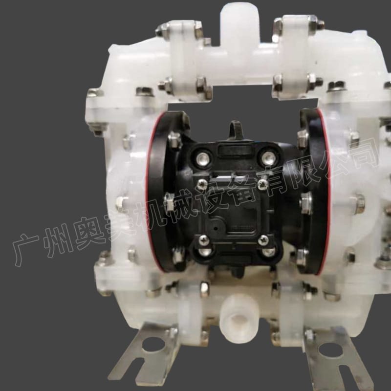 SANDPIPER(胜佰德)气动双隔膜泵(AODD)是一种以压缩空气为动力的容积式泵,广泛应用于化工、环保、水处理等行业。该泵采用工程塑料材质,具备优异的耐腐蚀性和耐磨性,可处理含固颗粒达44mm的高黏度、高冲蚀性流体。具有干运行不损坏、自吸能力强、无密封设计免维护等优势,适用于吸上式、液下式及便携式安装。 产品特点: - 材质可选:PVDF、聚丙烯、尼龙等工程塑料 - 最大流量:23 GPM(87 L/min) - 最大扬程:100 psi(7 bar)或231 ft 水柱 - 可处理最大固体颗粒:44mm(重载型号) - 支持干运行、死点停机、无需电源,安全可靠 - 模块化设计,维护简便,寿命长 本产品由广州奥美机械设备有限公司直销,公司专注流体输送领域十余年,提供计量泵、气动隔膜泵等全系列解决方案。我们承诺使用原厂配件,确保泵体性能与保修有效性。所有数据来源于工厂测试,实际工况可能略有差异,请下单前联系客服确认具体参数与价格。