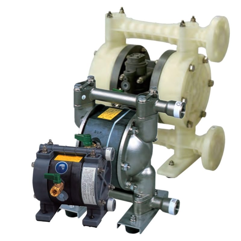 YAMABA高性能气动隔膜泵系列包括NDP-5、NDP-10和NDP-15等多个型号,适用于工业流体输送场景。产品分为金属泵体(铝合金、不锈钢)和塑料泵体(聚丙烯PPG、聚偏二氟乙烯PVDF、聚醛树脂POM),可适配不同腐蚀性液体环境。膜片材质涵盖NBR、CR、EPDM、PTFE、TPEE等多种选择,温度适用范围从0°C至100°C。各系列最大吐出量分别为:NDP-5为10L/min,NDP-10为20L/min,NDP-15为50L/min。供气压力范围为0.2–0.7MPa,最高排出压力可达0.7MPa。所有型号具备1米最大自吸扬程能力。塑料泵体型号需参考液体温度-压力关系图以确保安全运行。止回阀形式有球阀与平板阀可选,其中平板式不适用于含固体颗粒或浆液类介质。该系列产品广泛应用于化工、水处理、电镀、制药等行业,具有结构紧凑、维护简便、运行可靠等优点。