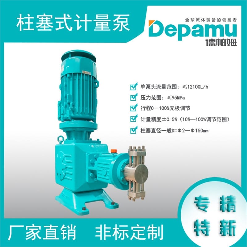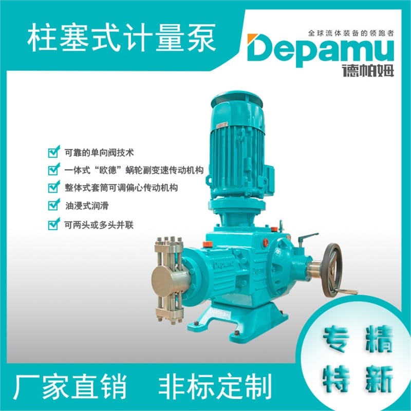 德帕姆(DEPAMU)柱塞式计量泵采用先进的整体式套筒可调偏心传动机构,具备0-100%行程无级调节功能,确保计量精度高达±0.5%(在10%-100%调节范围内)。该泵单泵头最大流量可达12100L/h,最高排出压力达70MPa,适用于高压、高粘度、高温及易结晶介质的精确输送。 泵头材质可选304、316、316L、904、哈氏C、Ti合金等多种耐腐蚀材料,满足不同工况需求。提供电动、气动、变频和手动多种调节方式,配备防爆电机选项,支持远程自动控制。 可选配电加热、保温/冷却夹套、远距离柱塞式泵头等特殊结构,适用于沥青、石蜡等易凝固介质。标配平面或球型自动复位式单向阀,密封性好,运行稳定,有效减少脉冲,提升系统可靠性。 典型应用包括石油化工、天然气、电力、冶金、发泡等行业,特别适合对输送精度和安全性要求高的工艺流程。建议在出口管路加装脉动阻尼器、安全阀和背压阀,以优化系统运行性能。