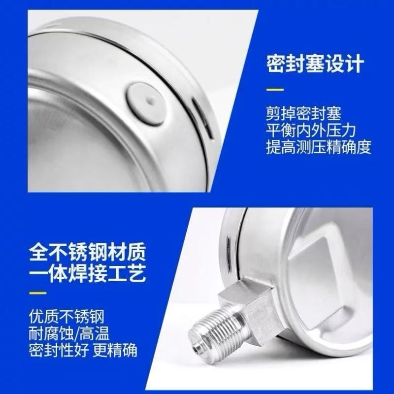 〉 【启迪】YTFO-100BF氦气专用不锈钢压力表禁油精度1.6级M20*1.5