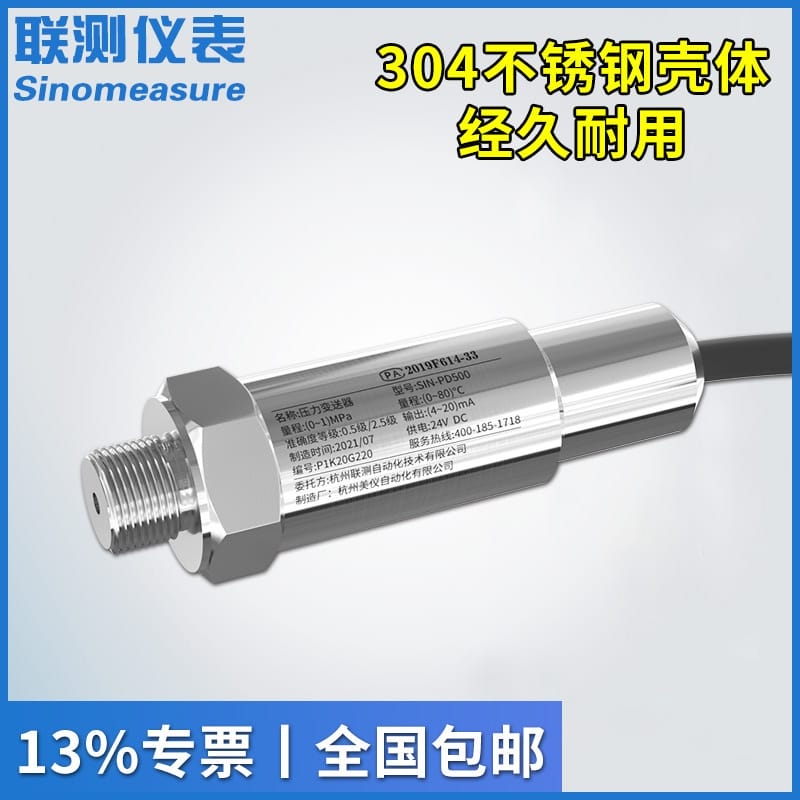 联测SIN-PD500温压一体变送器是一款集压力与温度测量于一体的高性能工业传感器。采用进口0.5级精度压力芯片,支持压力量程(0~1)MPa,温度测量范围(0~80)℃,输出信号为标准(4~20)mA,供电电压24VDC,具备优异的长期稳定性与抗干扰能力。产品外壳采用304不锈钢材质,具备IP68防护等级,耐腐蚀、耐用性强,适用于水压、气压、液压等多种介质环境。内置标准引压孔设计,安装便捷,广泛应用于电力、石油、化工、食品机械等工业领域。联测自动化拥有十余年的行业经验,通过ISO9001质量管理体系认证,配备专业研发与生产团队,确保每一台仪表均经过严格标定与72小时高低温老化测试,出厂优良率达99.9%。支持第三方校准服务,提供专业技术选型指导与定制化开发,助力工业智能化升级。
