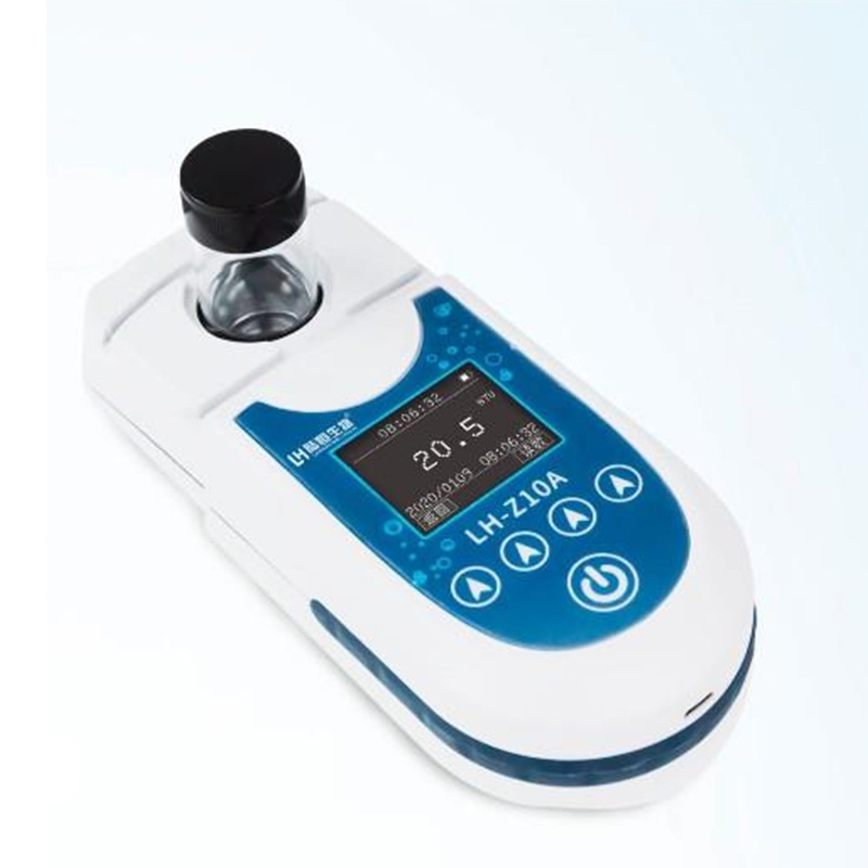 LH-Z10A便携式浊度计结合了散射光法和透射光法,采用了近红外光源,消除色度干扰,符合IS07027标准。仪器内设置有90°和180°两个检测器,180°检测器接收透射光,90°检测器接收散射光,散射光与透射光强度之比与样品中浊度成正比,可以通过测定散射光和透射光强度之比从而计算出样品的浊度值。
