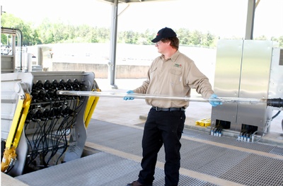 日常的系统维护无需将紫外灯模块或灯组移出渠道就可完成,但当需要将灯组移出消毒渠道时可使用系统一体化的自动提升装置(ARM)使得灯组移出过程安全、简单易行、自动化程度高。