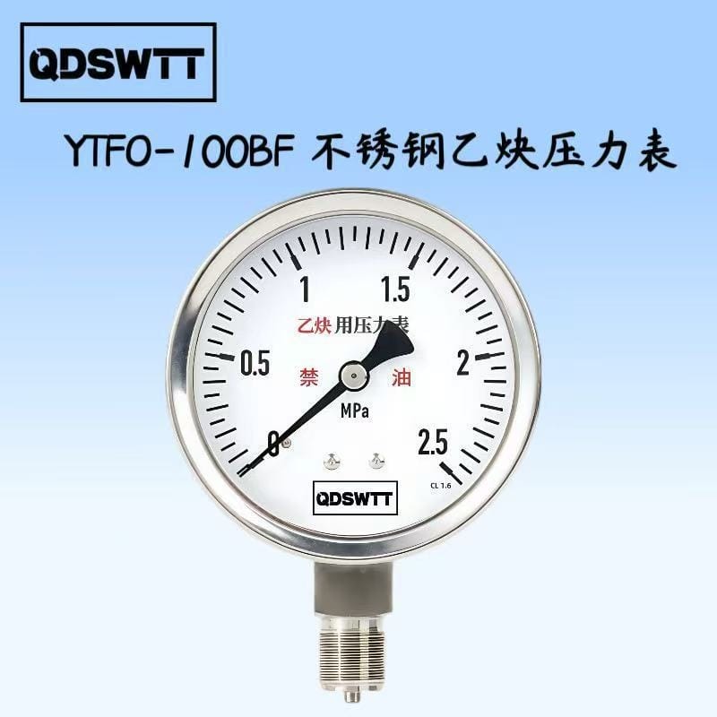 【启迪】YTFO-100BF乙炔专用不锈钢压力表禁油精度1.6级M20*1.5