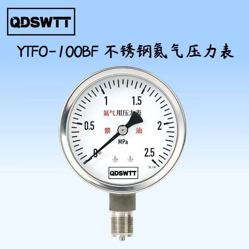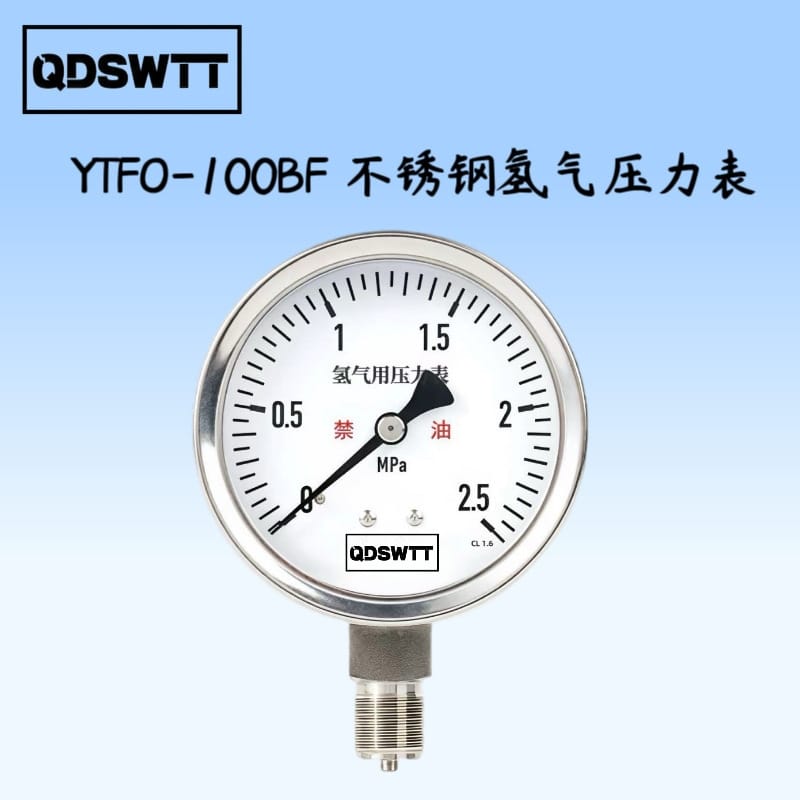 【QDSWTT】YTF0-100BF氢气专用不锈钢压力表禁油精度1.6级M20*1.5