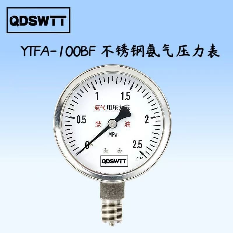 【启迪】YTFA-100BF氨气专用不锈钢压力表禁油精度1.6级M20*1.5