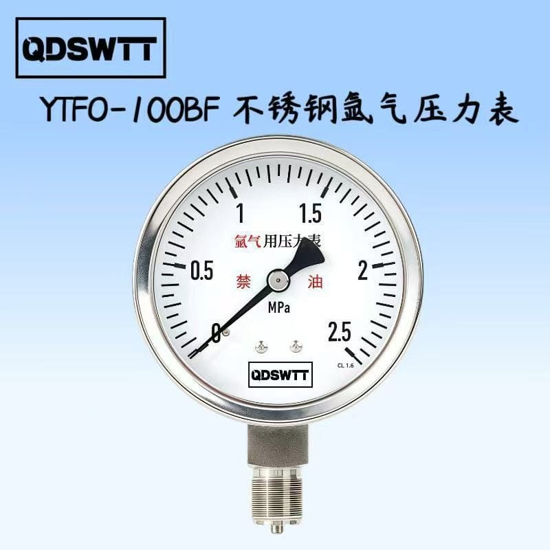 【QDSWTT】YTF0-100BF氧气专用不锈钢压力表禁油精度1.6级M20*1.5