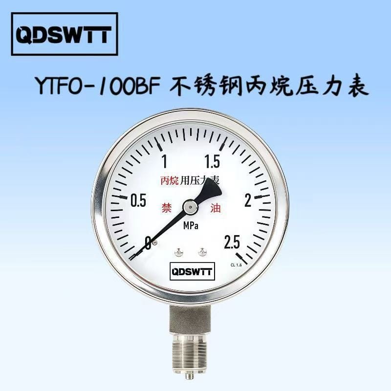 【启迪】YTFO-100BF丙烷专用不锈钢压力表禁油精度1.6级M20*1.5