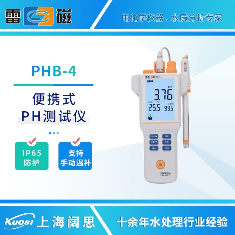 雷磁便携式PH计PHB-4/5手动温度补偿数显ph测定仪手持式ph酸度计