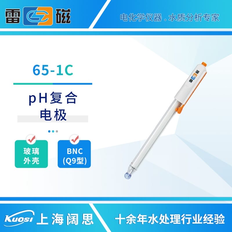 上海雷磁pH复合电极65-1C玻璃外壳便携工业在线ph电极传感器探头