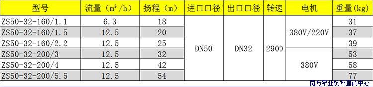 〉 杭州南泵流体ZS50/65/80/100系列卧式不锈钢单级离心泵/热水循环