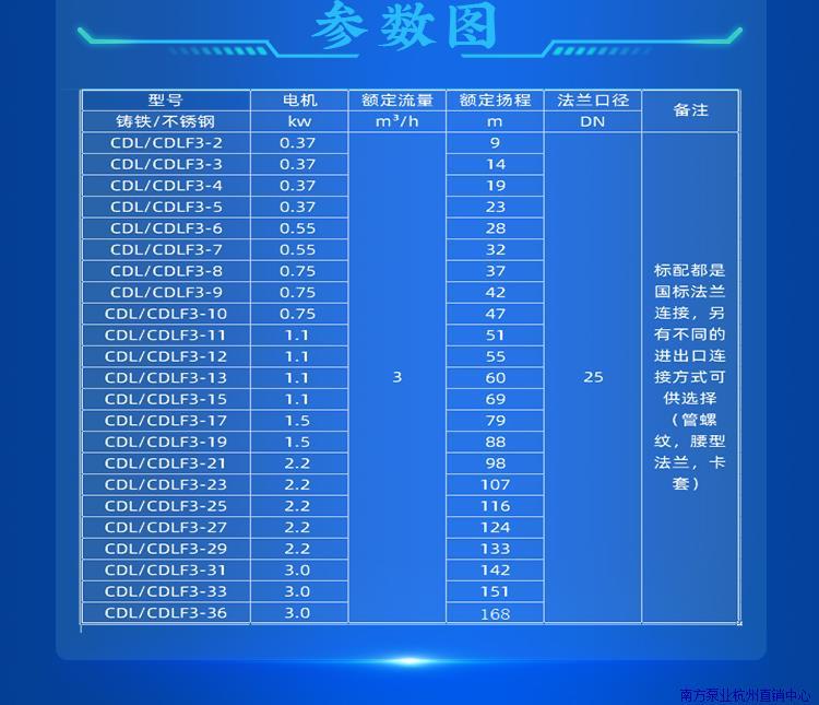 〉 杭州南泵流体CDL/CDLF3-13/15/17/19/21/23立式多级离心增压水泵
