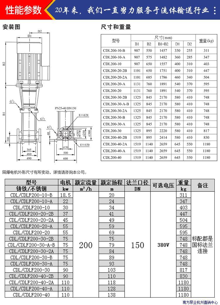 〉 杭州南泵多级泵增压循环泵CDL/CDLF200-10/20/30-40FSWPC立式