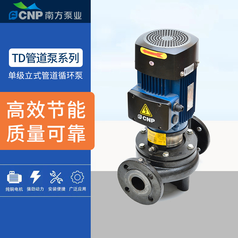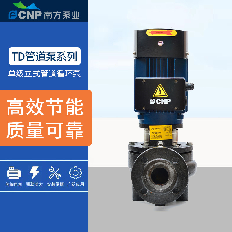 南方泵业TD系列立式管道泵,采用优质铜芯电机,动力强劲,运行稳定,经久耐用。产品具备无水空转保护功能,有效防止干运转损坏。外壳采用高精密喷漆工艺,防腐防锈,适应多种复杂工况。配备国标法兰接口,安装便捷,提升输送效率。内置散热风罩设计,通过风轮降温有效延长电机寿命。广泛适用于冶金、石油化工、食品加工、染料、污水处理及养殖池塘等场景。杭州直销中心供货,品质保障,服务可靠。