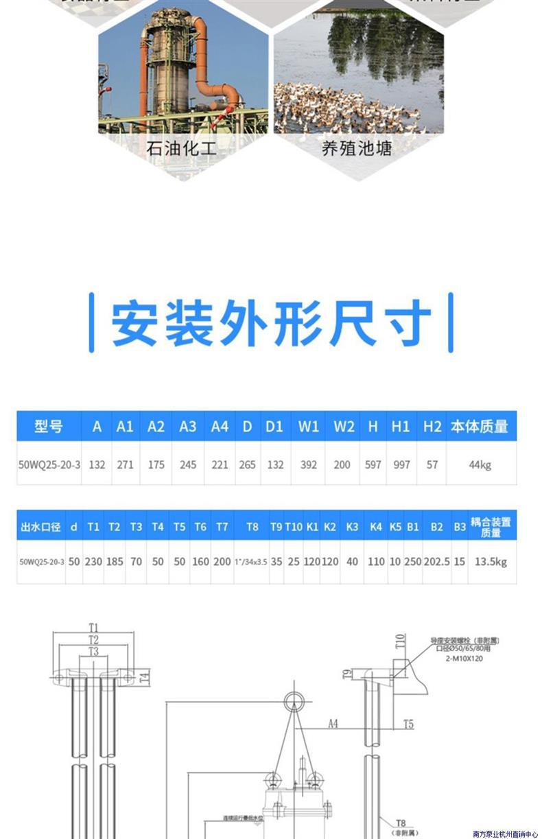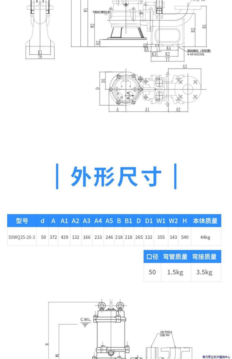 〉 南方水泵南泵40-50-65WQ潜水泵污水泵切割泵无堵塞工业生活废水电