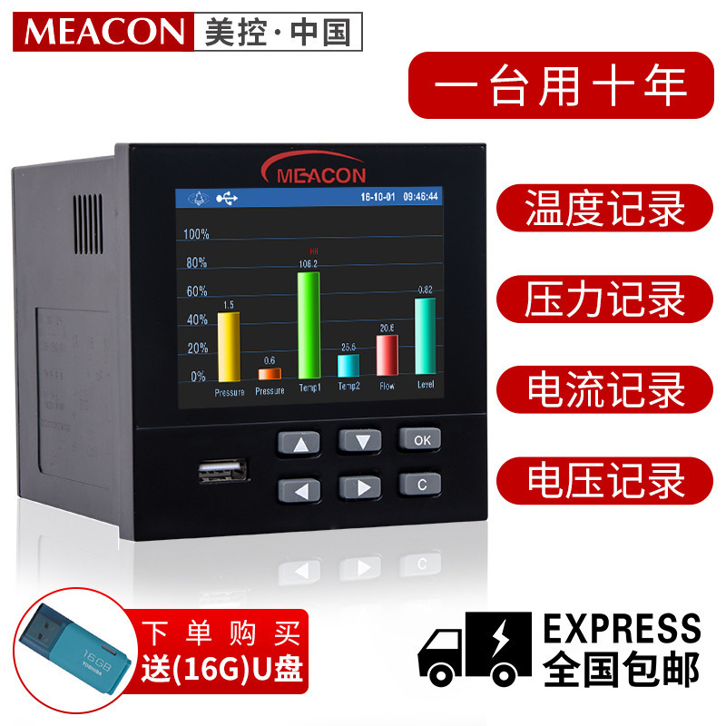 〉 美控无纸记录仪 彩屏工业级记录仪温湿度压力电流电压数据 记录仪