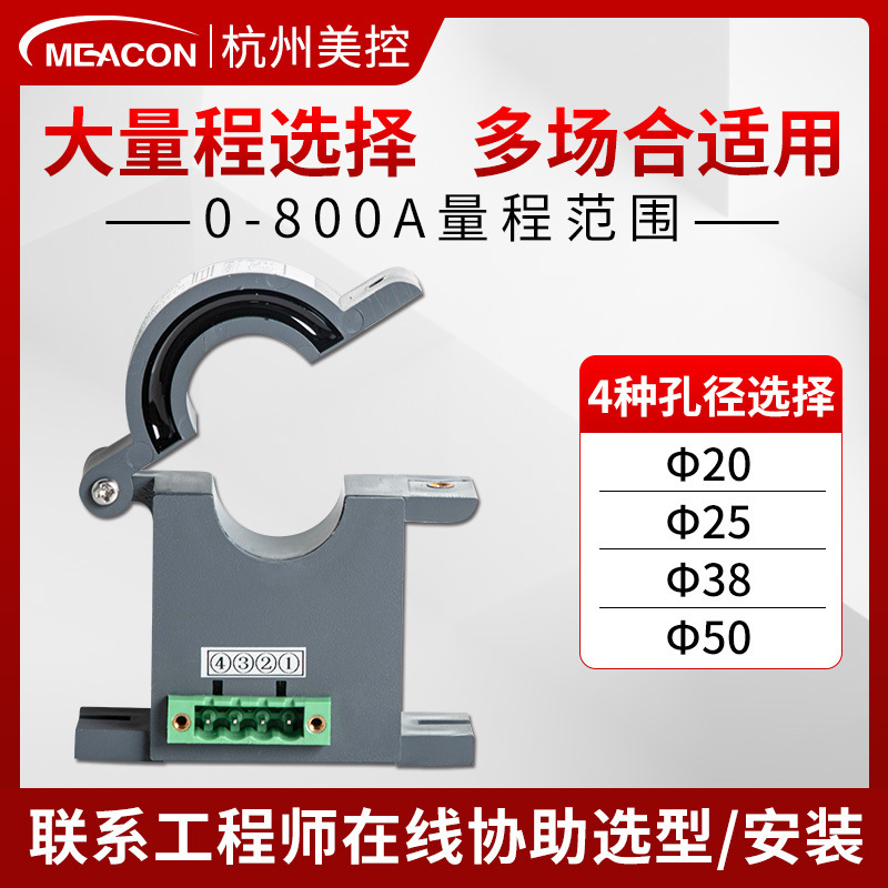 美控霍尔电流传感器100A交流开环霍尔电流变送器4-20mA霍尔电量