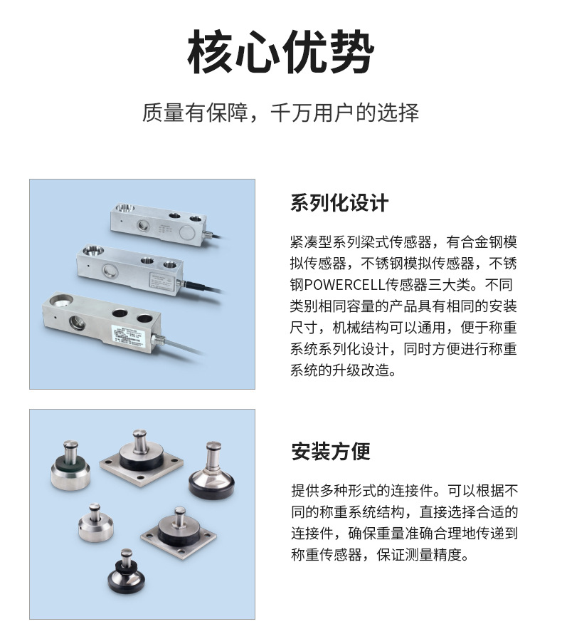 梅特勒托利多(METTLER TOLEDO)SLB415紧凑型梁式称重传感器是一款高性能工业称重解决方案,具备C3精度等级,广泛应用于各类称重系统。该系列涵盖合金钢模拟传感器、不锈钢模拟传感器及不锈钢POWERCELL传感器,相同容量产品具有统一安装尺寸,便于系统设计与升级。 核心优势包括:全球计量与防爆认证(OIML、NTEP、ATEX、FM、CPA等),焊接密封结构确保IP68防护等级,优质合金钢材料提升耐用性。传感器具备出色的温度稳定性和抗过载能力(安全过载150%,极限过载300%),并提供多种电缆长度选择。 SLB415支持多种连接件(如SPC、0745A-EK/FK/EVK系列),安装便捷,确保载荷准确传递。适用于工业衡器、料罐称重、过程控制等场景,是高精度、高可靠性称重应用的理想选择。
