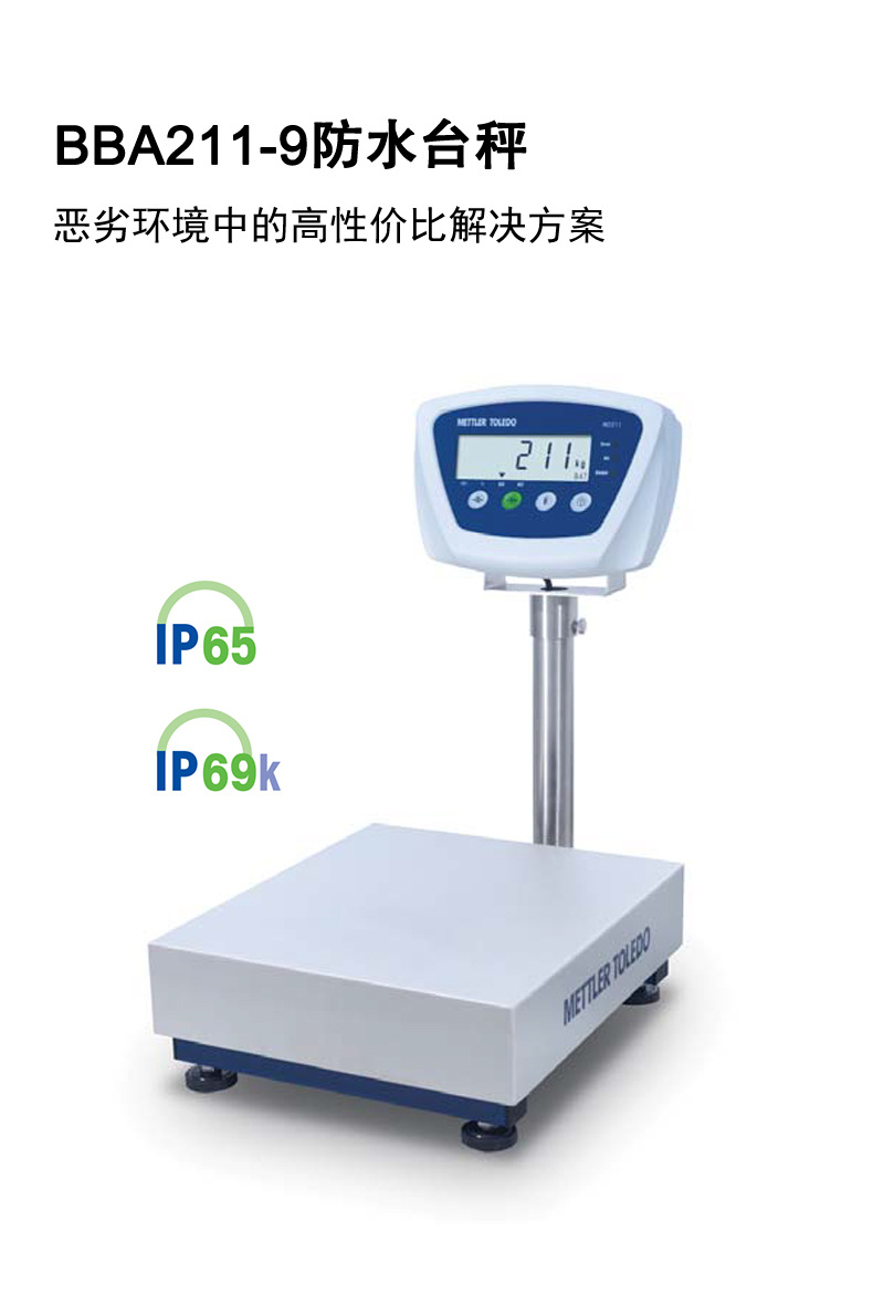 梅特勒托利多(METTLER TOLEDO)BBA211-9防水台秤是一款专为恶劣及潮湿环境设计的经济型称重设备,适用于工业生产、仓储物流等多种场景。配备BBA211仪表,拥有6位数字显示、25mm大字体LCD屏幕和白色背光,搭配三色LED指示灯,轻松实现物体检重判断。