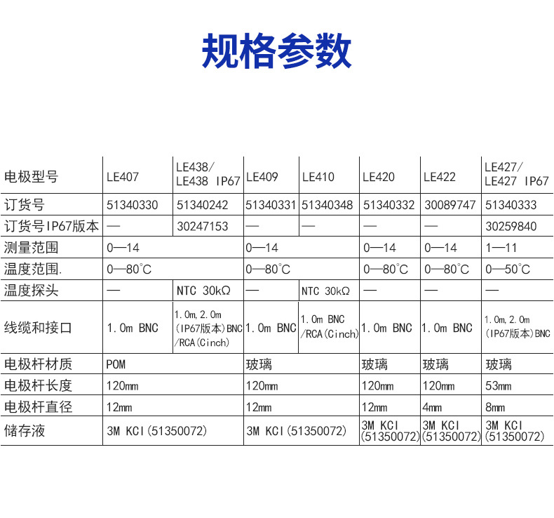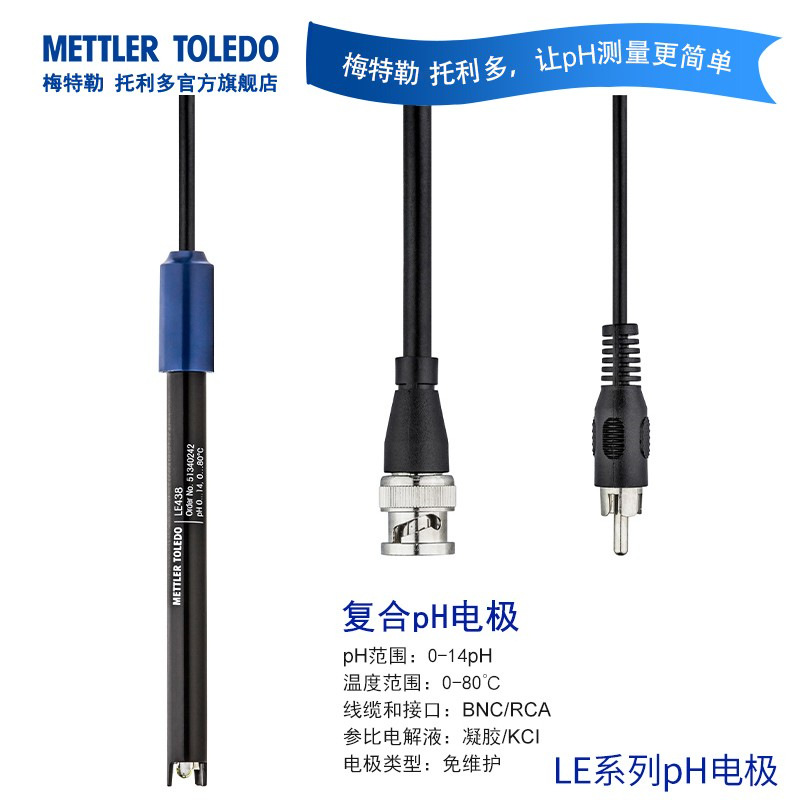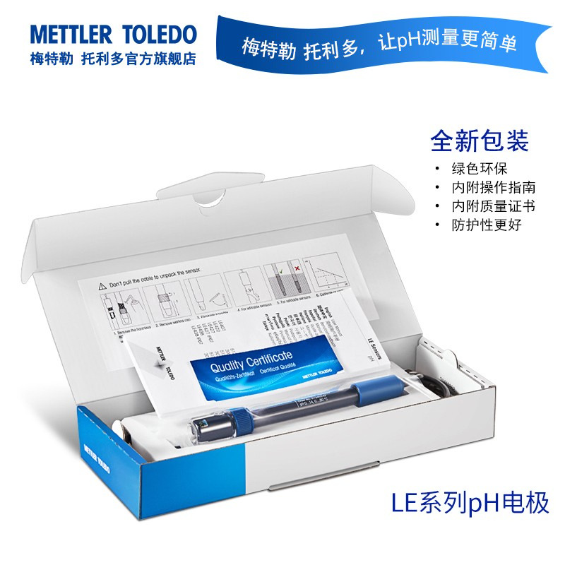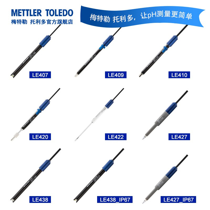 梅特勒托利多(METTLER TOLEDO)是百年瑞士品牌,全球领先的精密仪器与衡器制造商。其全新LE系列pH电极专为实验室及工业常规应用设计,结合高品质材料与成熟技术,确保测量结果准确可靠。 该系列电极具备以下优势: - **性能可靠**:采用稳定材质,支持IP67防水等级仪表,适用于严苛环境。 - **简单易用**:低维护设计,配备优化保湿帽,支持单手操作,更换便捷。 - **专业匹配**:专为梅特勒托利多Five系列仪表设计,兼容标准BNC接口,广泛适配各类设备。 - **多场景应用**:适用于纯水、废水、食品(牛奶、果汁、啤酒、酱油等)、生物样品(血浆、TRIS溶液)、化妆品及工业介质的pH测量。 主要型号包括LE407、LE438/IP67、LE409、LE410、LE420、LE422、LE427/IP67,满足不同温度、介质和安装需求。电极杆材质涵盖POM与玻璃,线缆长度及接口灵活配置,适合实验室与现场使用。 **规格概览**: - 测量范围:0–14 pH(LE427为1–11) - 温度范围:0–80℃(LE427为0–50℃) - 接口类型:BNC或RCA(Cinch) - 线缆长度:1.0m 或 2.0m(IP67版本) - 储存液:3M KCl(订货号51350072) 购买提示:本产品由梅特勒托利多中国官方旗舰店销售,享受与线下同等服务。发货、发票及售后服务由授权合作伙伴提供,建议购买前咨询客服确认区域覆盖与库存情况。不支持7天无理由退货,请谨慎下单。