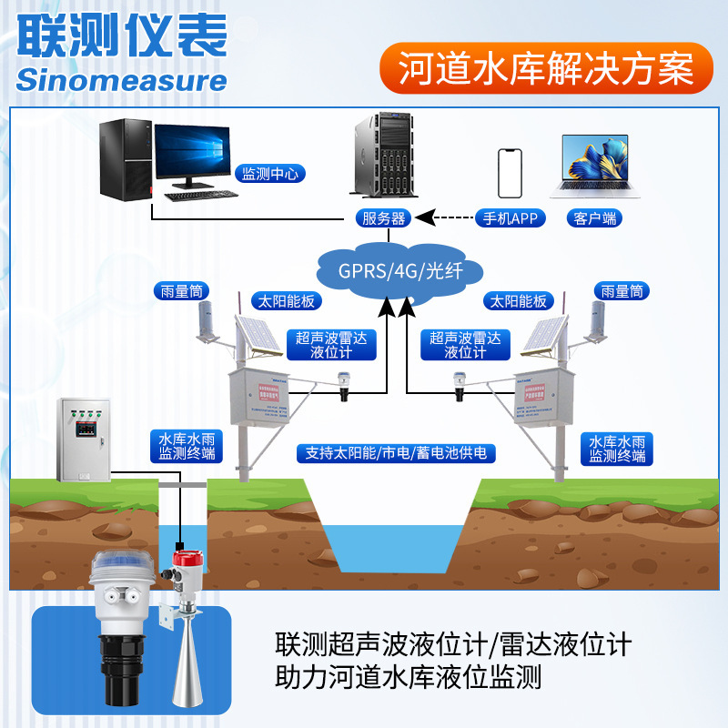 联测超声波液位计河道水库湖水海水水位潮汐监测一体式液位变送器