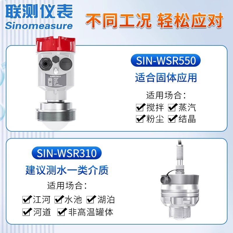 联测仪表SIN-WSR550 80G高频雷达液位计是一款专为工业物位测量设计的高性能产品,发射频率76~81GHz,具备3°窄波束角,聚波能力强,可实现毫米级测量精度,最小盲区小,适用于复杂工况如搅拌、蒸汽、粉尘环境。测量范围覆盖0.08~60米,支持多种过程连接方式(螺纹、万向法兰、防腐法兰等),外壳防护等级达IP67,工作温度范围广(-40~150℃)。产品采用CMOS毫米波射频芯片与FMCW调制技术,配备智能算法,响应迅速,标配蓝牙功能,支持无线调试与远程升级。输出信号包括4-20mA、RS485(MODBUS)、HART协议,供电支持24VDC或220VAC。广泛应用于化工、水处理、钢铁、电力等行业,如陶氏化学酸碱液位监测、南京钢铁厂物位监控等实际案例验证其稳定可靠。通过ISO9001认证及SGS验厂,全国30大办事处提供24小时技术支持,质保三年,值得信赖。