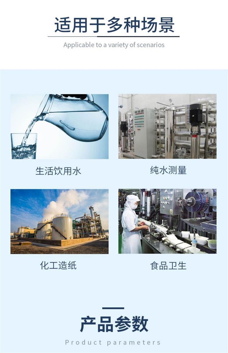 阔思CCT-5300系列电导率测控仪是一款集测量与控制于一体的智能化仪表,采用精工芯片技术,具备自动量程切换功能,确保测量精准稳定。产品配备多种电导池型号(如CON3133-13、CON2136-13等),适用于生活饮用水、纯水、化工、造纸、食品卫生等多个行业领域的水质在线分析。设备采用316L精轧不锈钢管材质,稳定无析出,搭配NPT螺纹快装接口,安装便捷。支持隔离电流输出与继电器控制,防护等级高,信号线缆耐高温强拉力。整机功耗低,工作稳定,适用于温度0~50℃环境,广泛应用于工业涂装、清洗、高纯水系统及水处理过程的实时监控。