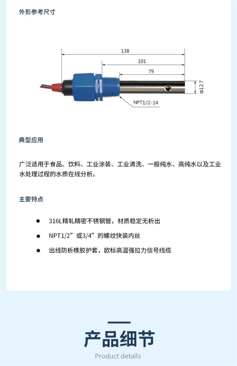 科瑞达CON2136-13电导率电极NTC10K电导仪石墨传感器10.0石墨探头