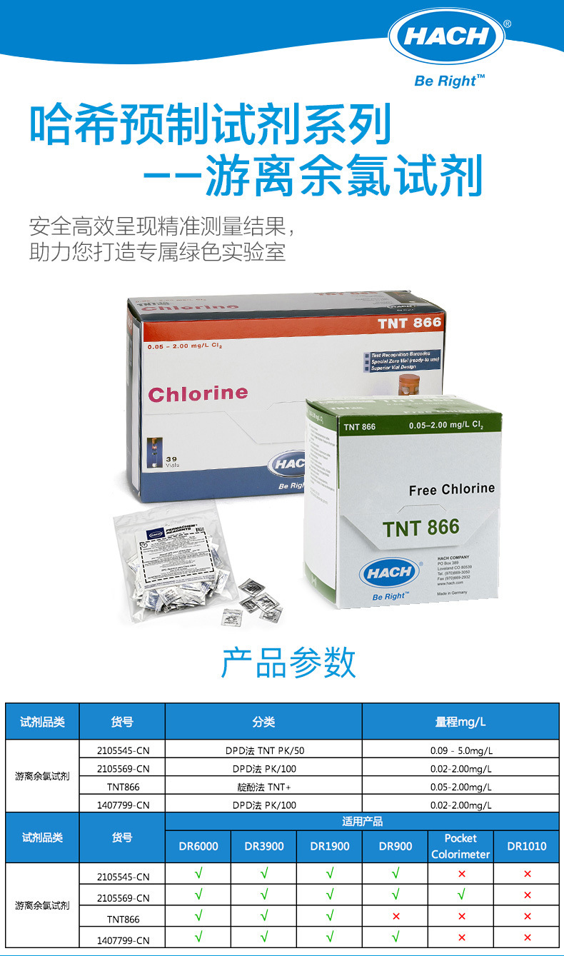 HACH/哈希预制试剂系列游离余氯1407799/1407028/2105528