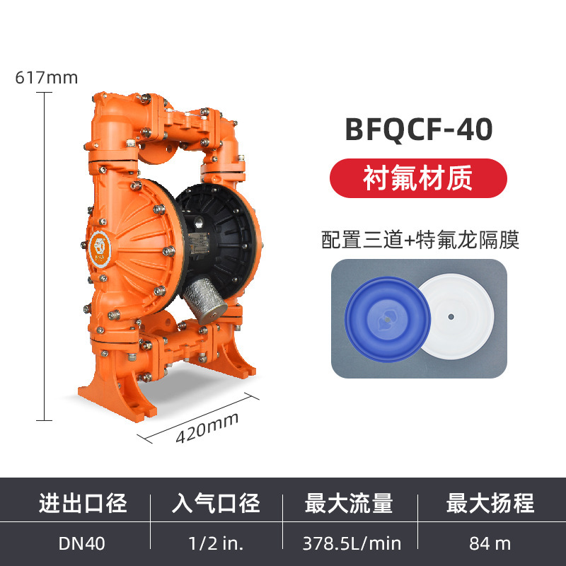 边锋机械固德牌钢衬四氟气动隔膜泵BFQCF系列防爆流体衬氟隔膜泵